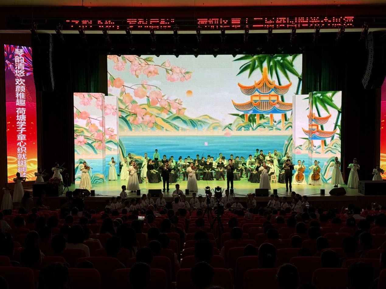 本次展演由管弦乐、弦乐合奏《铃儿响叮当》《上春山》《灯火里的中国》拉开帷幕,传统与现代曲目交织,彰显学生扎实的艺术素养。舞蹈《星光闪耀童年》活泼灵动,音乐剧《寻找声音的耳朵》以创意形式传递孩子们的成长感受,戏曲联唱《抬花轿》弘扬传统文化精髓,一个个节目不断将展演推向高潮,赢得了现场观众的阵阵掌声,呈现了一场贯穿"童心、青春、梦想"的艺术盛宴,生动展现了荷塘区素质教育的丰硕成果。