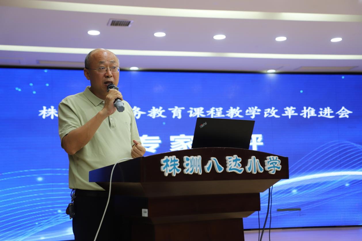 市教科院副院长余民总结36所课程改革实验校视导情况,强调要深化课堂教学变革,推动"双减"与课程改革深度融合,构建具有株洲特色的高质量教育体系。
