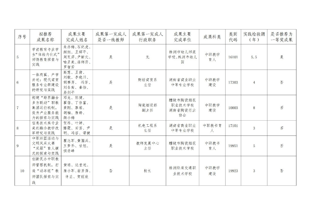 株洲市教育局关于2021年湖南省职业教育省级教学成果奖评审株洲市拟推荐名单的公示