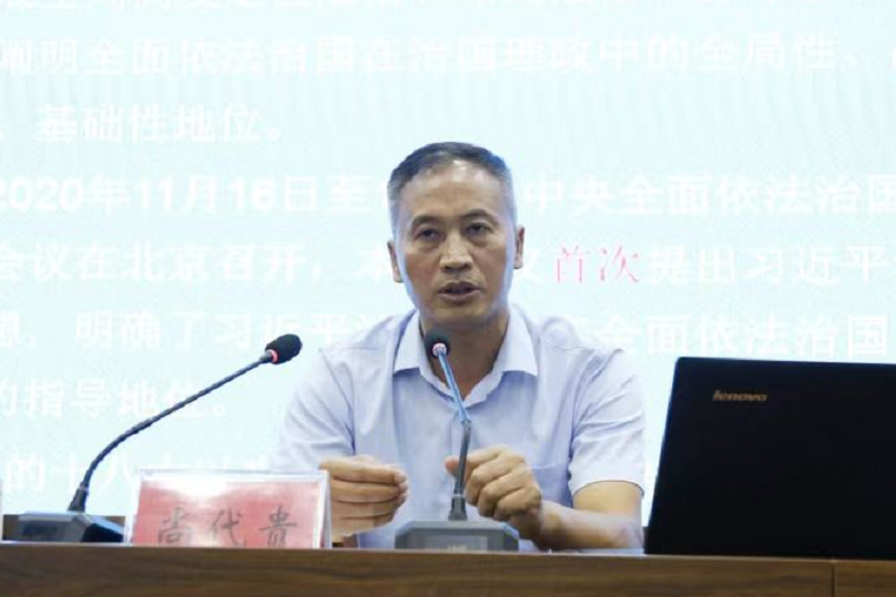 尚代贵围绕《习近平谈治国理政》第四卷中的第十一章——"加快建设社会主义法治国家",和大家一起学习习近平法治思想,展现出习近平法治思想的核心内容和重大意义,对习近平法治思想的形成和发展进行了系统讲解。