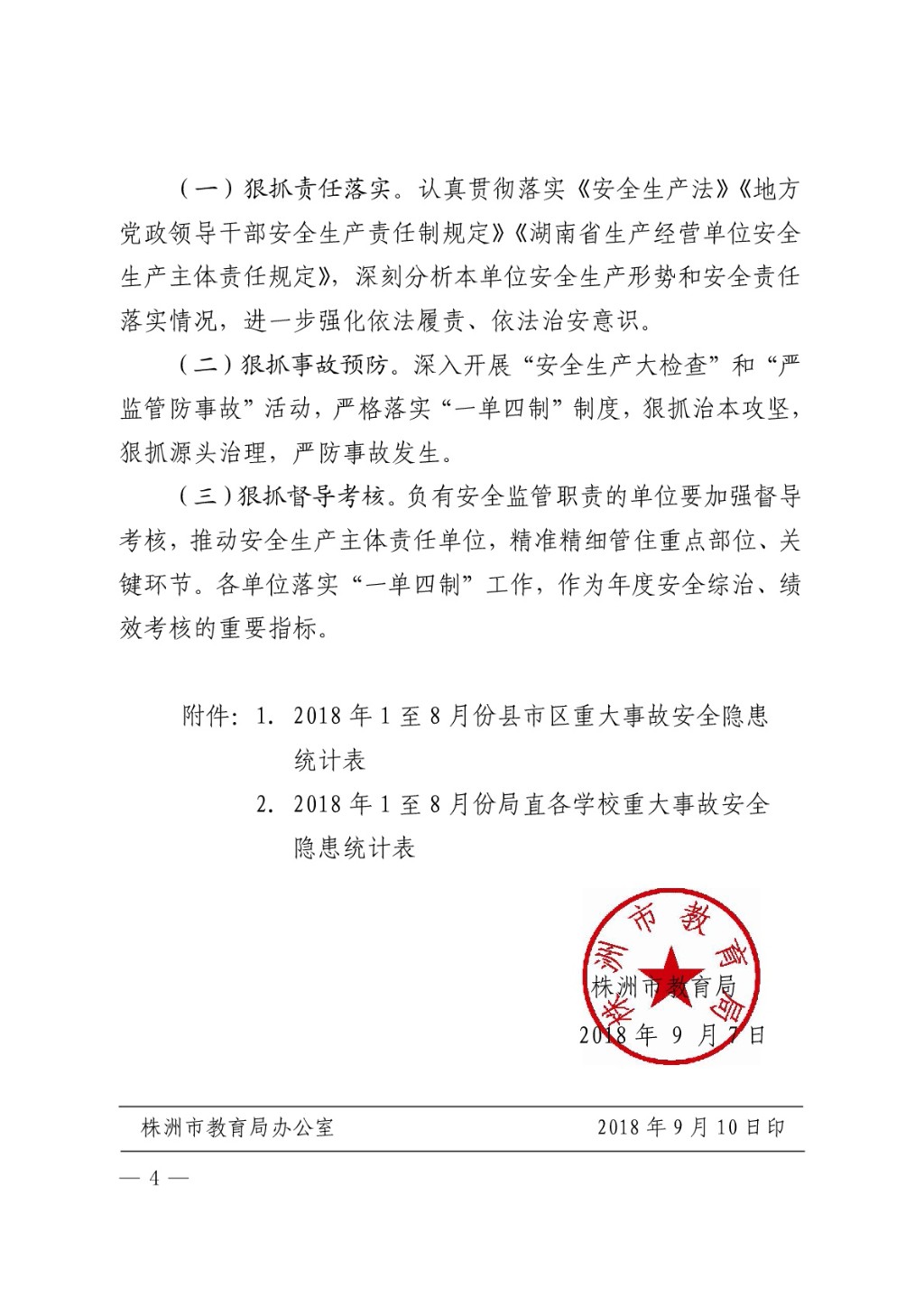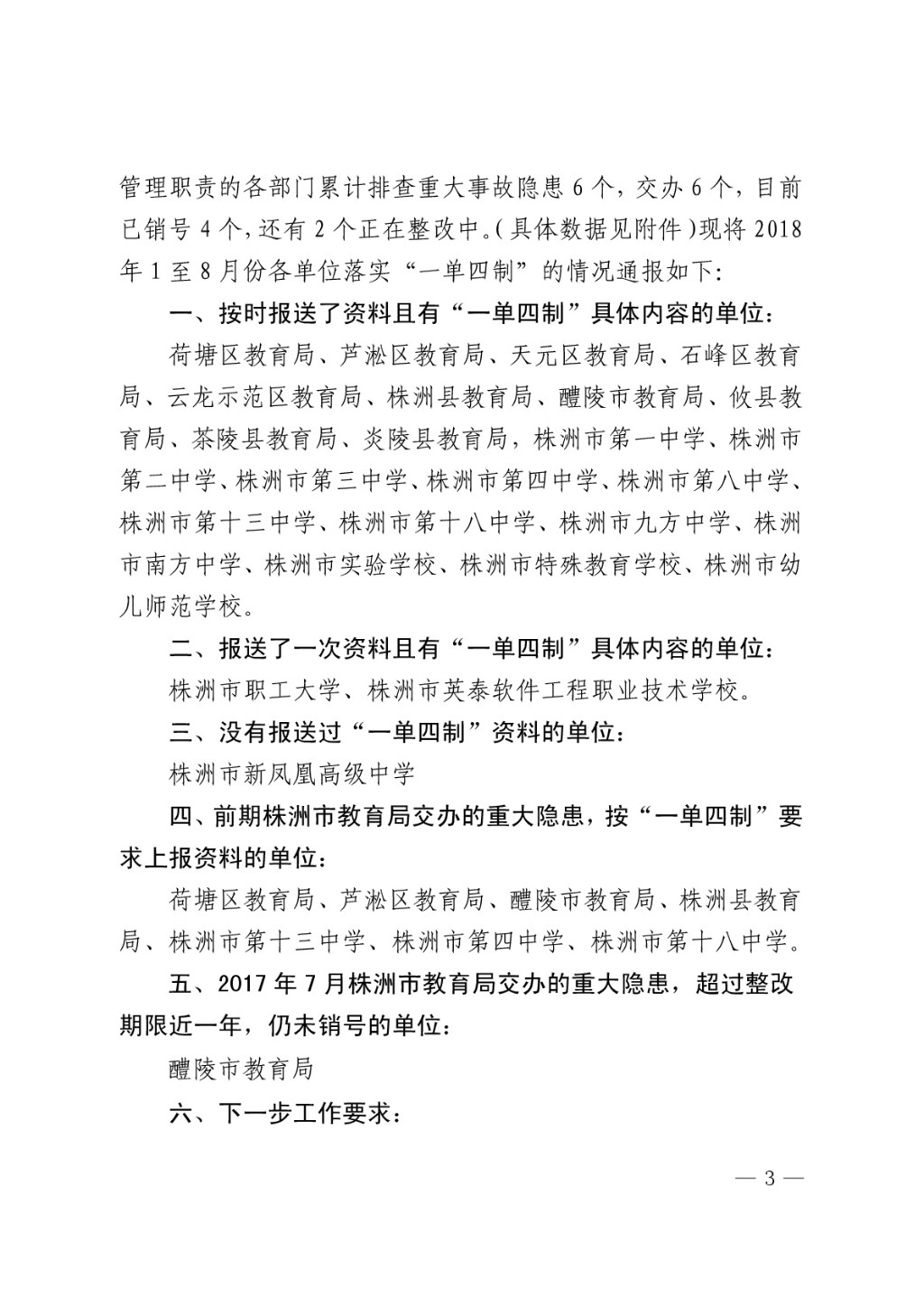 株洲市教育局关于株洲市教育系统2018年1至8月份“一单四制”落实情况的通报