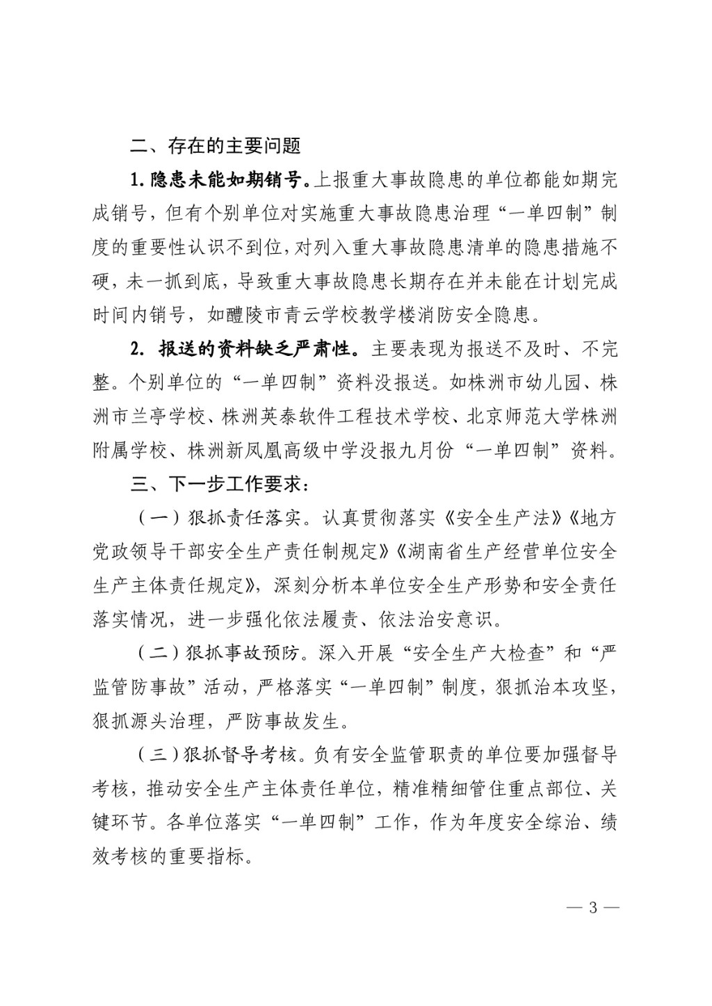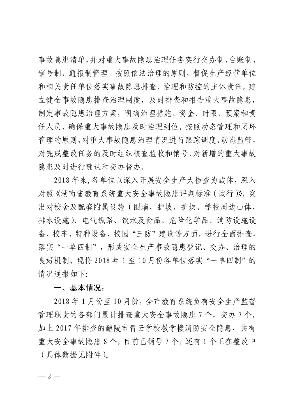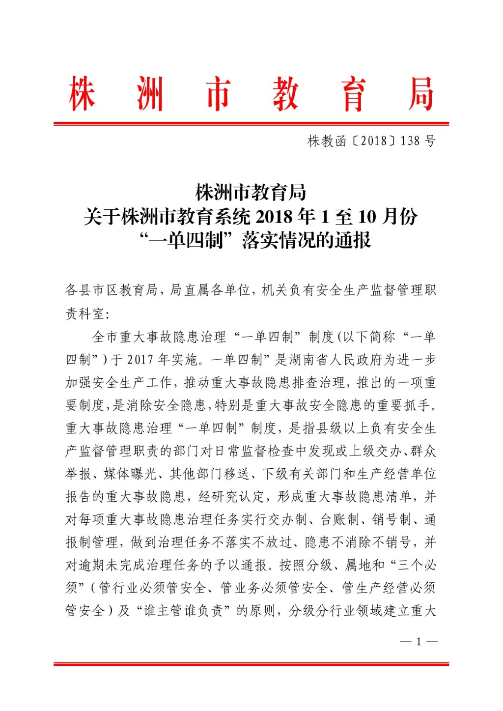 株洲市教育局关于株洲市教育系统2018年1至10月份“一单四制”落实情况的通报