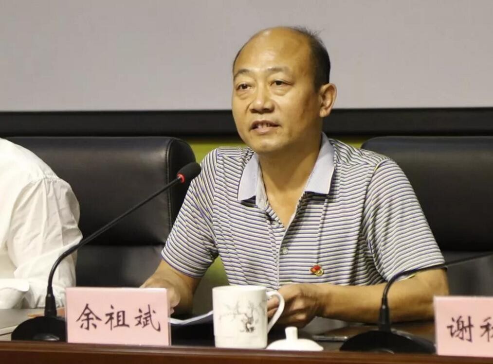 图:市委主题教育第十二指导组组长余祖斌并讲话