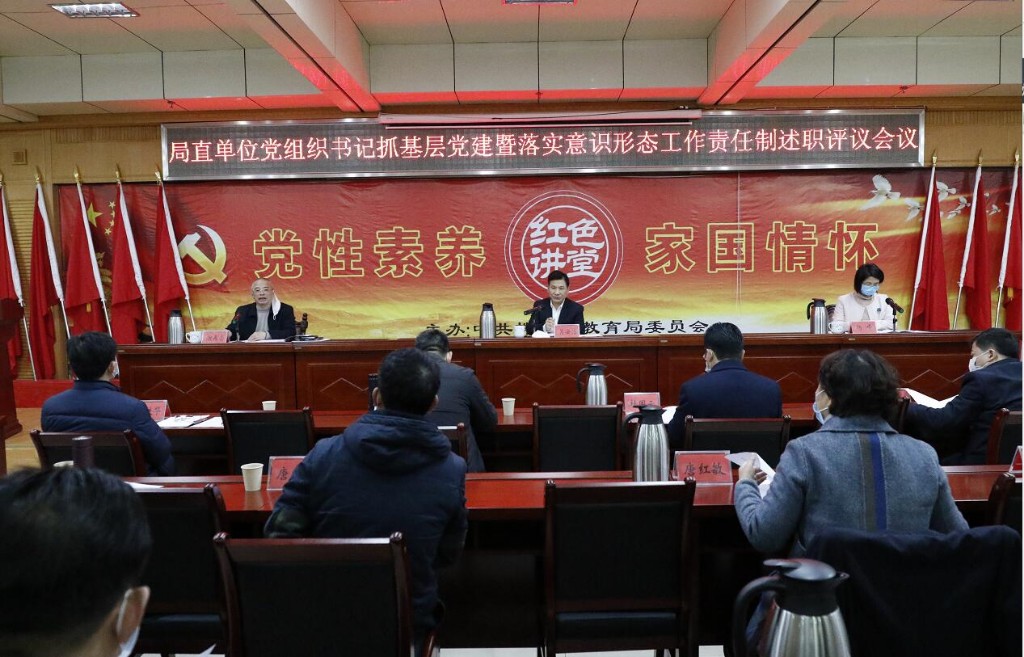 3月9日,市教育局召开2019年度直属单位党组织书记抓基层党建暨落实意识形态工作责任制述职评议会。会议由局党委委员谢再荣主持,局党委书记、局长吴安浩逐一点评述职并讲话,市委组织部干部二科科长杨峰莅临指导。